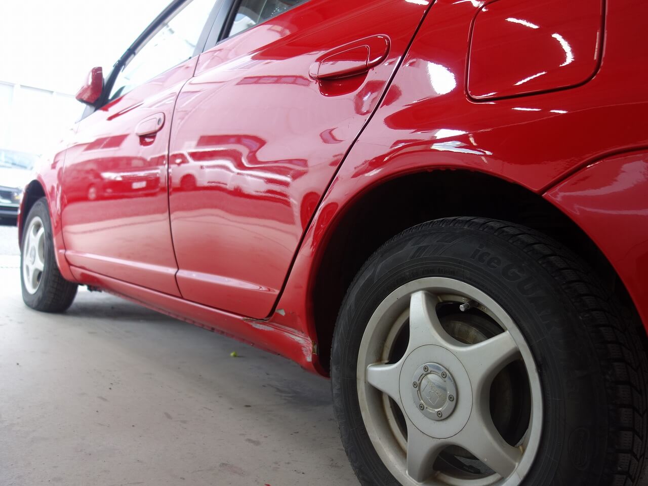 トヨタ プラッツ 左サイドシル事故 キズ&へこみ板金・塗装・修理 東京都青梅市よりご来店のリピーター様です