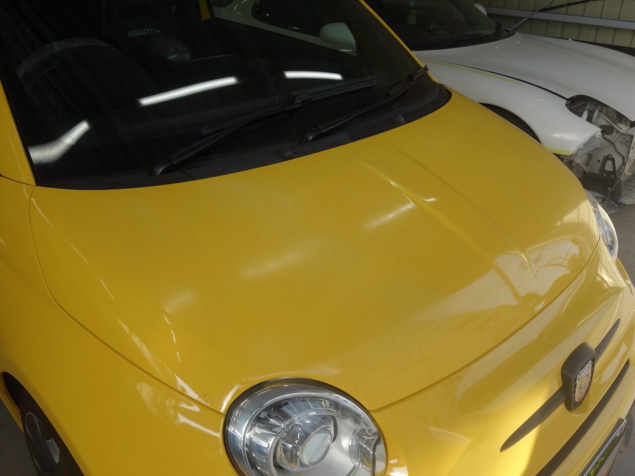 アバルト595 フード塗装劣化修理 東京都八王子市よりご来店のお客様です