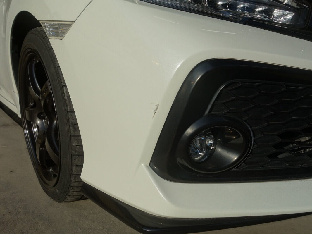 ホンダ シビック右前部追突事故 板金・塗装・修理、リヤまわりシーリング劣化など修理(対物保険プラスご実費)神奈川県よりご来店のリピーター様です