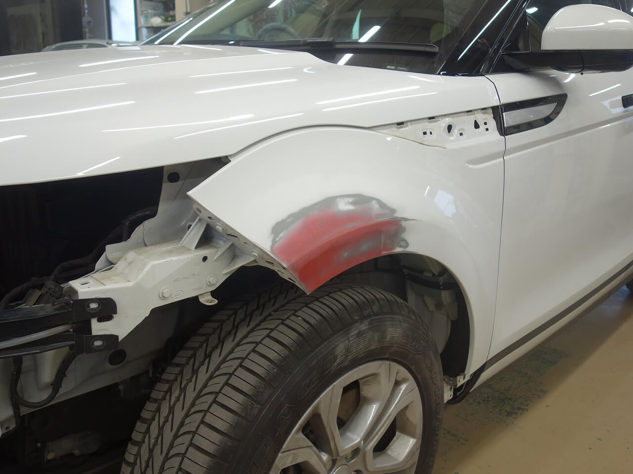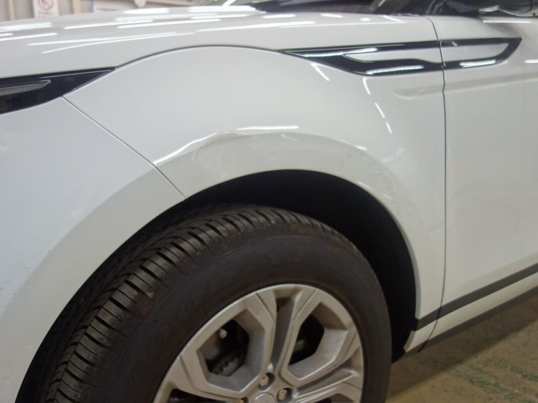 ランドローバー レンジローバー イヴォーク 左前部事故 キズ&へこみ板金・塗装・修理 東京都日野市よりご来店のリピーター様です