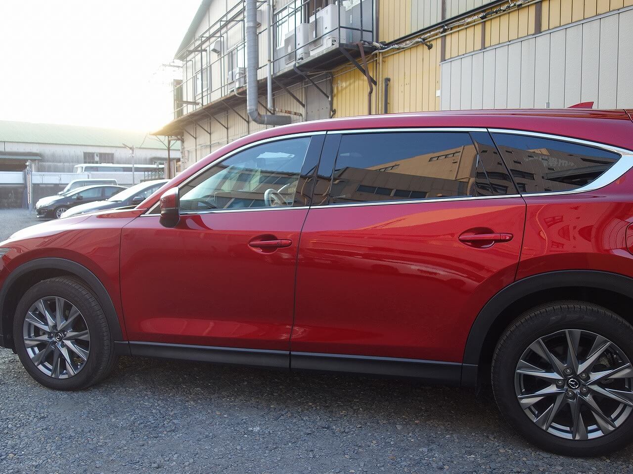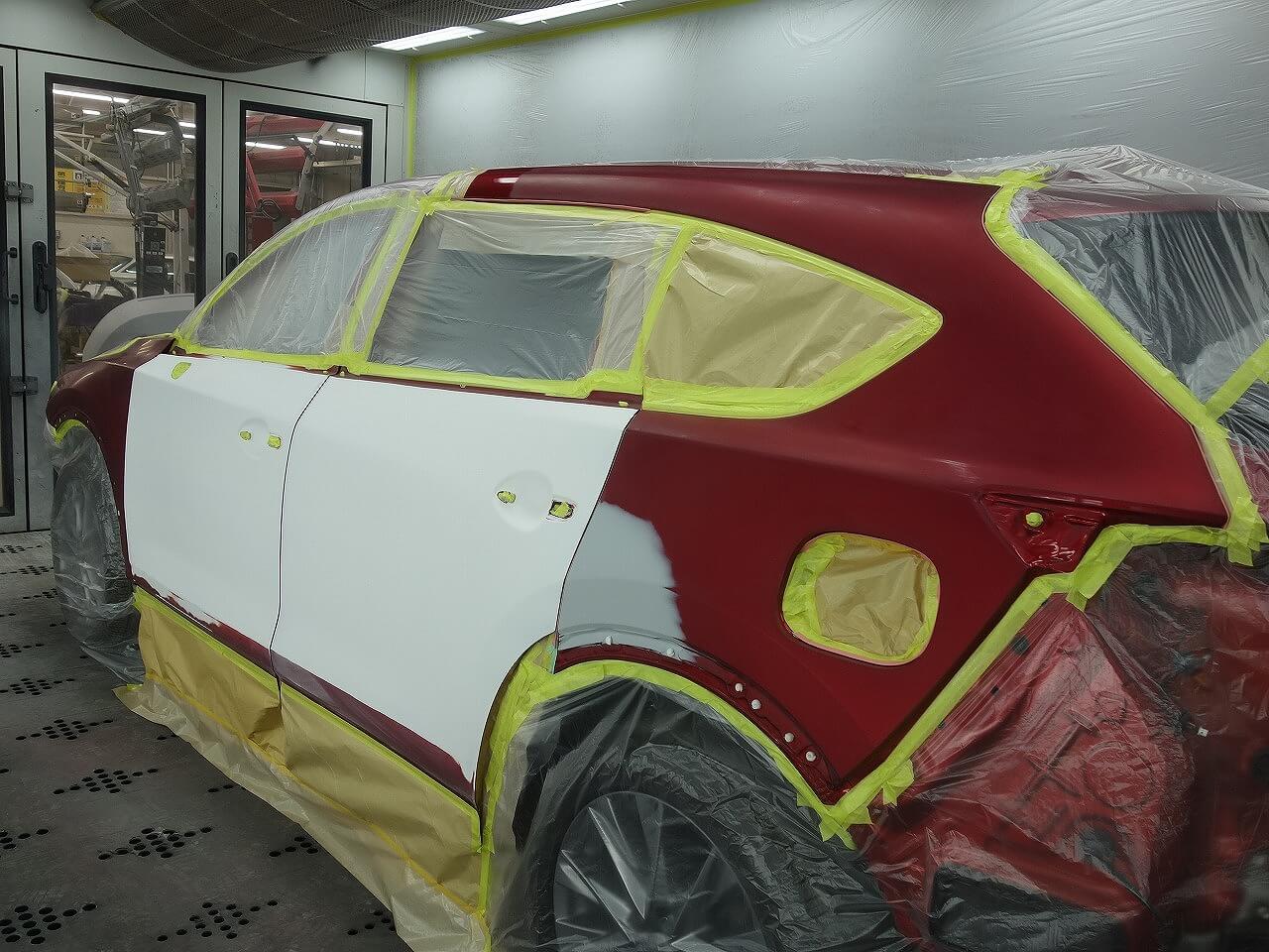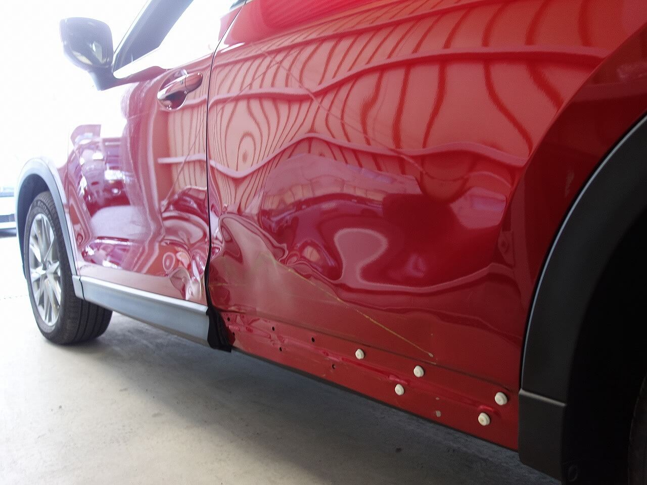 マツダ CX-8(ソウルレッドクリスタルメタリック:46V) 左側面事故 キズ&へこみ板金・塗装・修理 東京都調布市よりご来店のお客様です