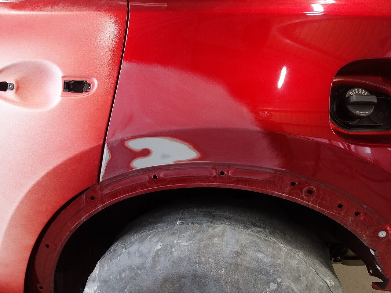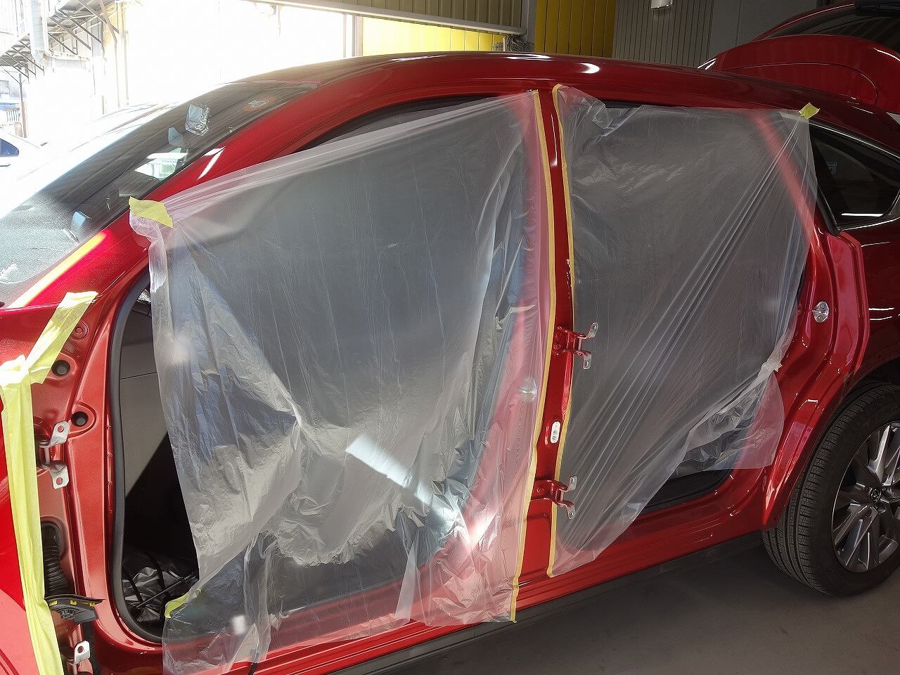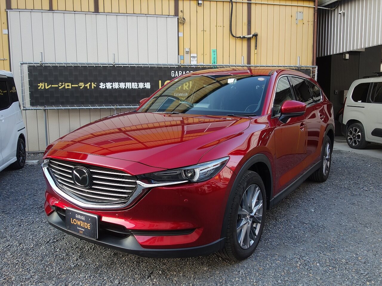 マツダ CX-8(ソウルレッドクリスタルメタリック:46V) 左側面事故 キズ&へこみ板金・塗装・修理 東京都調布市よりご来店のお客様です