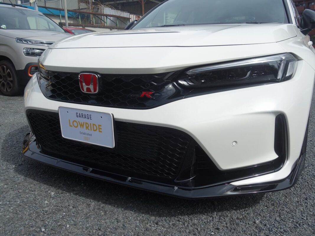 ホンダ シビック フロントバンパ&フロントアッパーグリルキズ修理・塗装、ノブレッセ製フロントアンダースポイラー取付 東京都八王子市よりご来店のお客様です