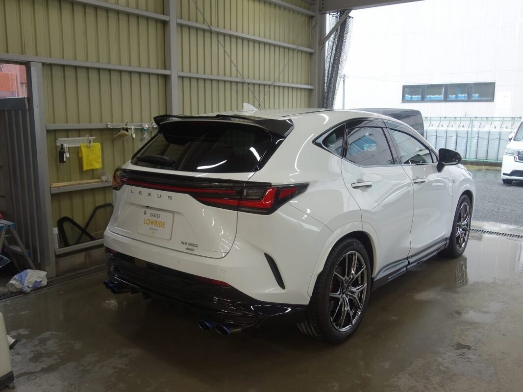 トヨタ レクサスNX350 アーティシャンスピリッツ製カーボンルーフスポイラー&リヤゲートスポイラークリア塗装・取付 東京都練馬区よりご来店のお客様です