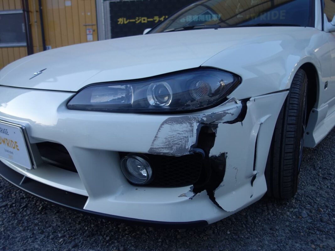 日産 シルビア 左前部追突事故 キズ&へこみ板金・塗装・修理(車両保険) 東京都多摩市よりご来店のリピーター様です